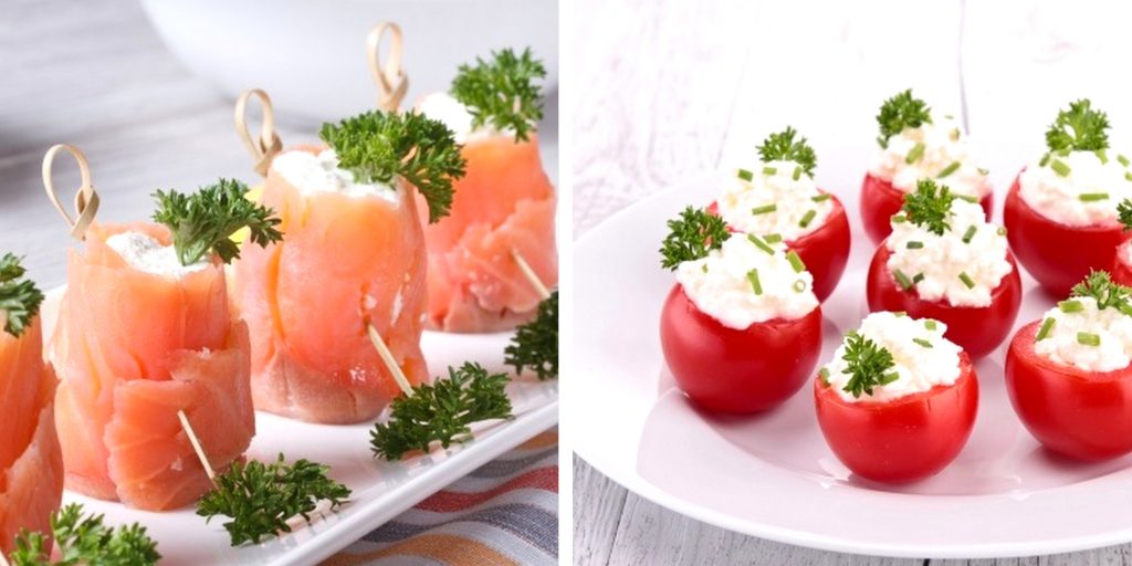 Rolinhos de salmão com queijo cottage