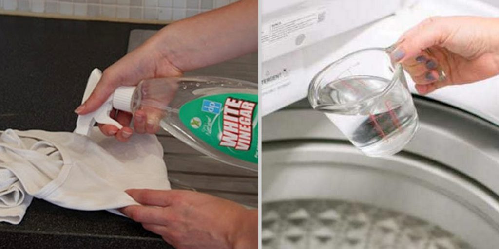 Apenas uma colher de sopa de vinagre em 250 ml de água morna e pronto! Mergulhe sua roupa nessa misturinha, enxague e lave como sempre lavou.
