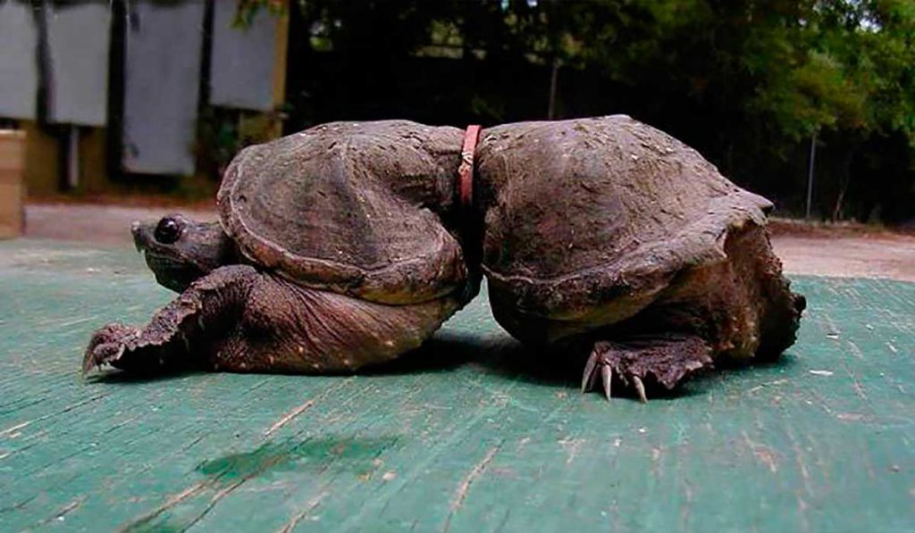 1. Depois de ser pega em uma rede de pesca, esta tartaruga ficou gravemente ferida e teve que amputar uma de suas patas