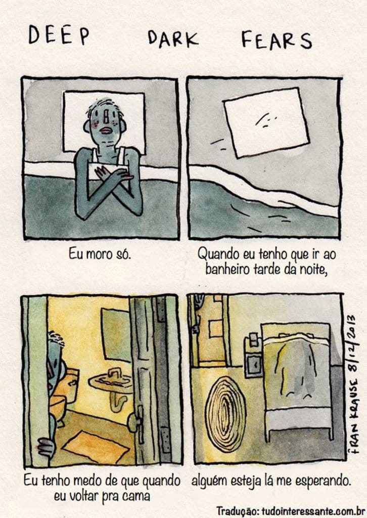 Em um trabalho bastante curioso, o artista norte-americano Fran Krause teve a ideia de transformar os temores das pessoas em tirinhas. E o detalhe especial fica por conta dele abordar muitos medos que nós não temos coragem de confessar que temos.