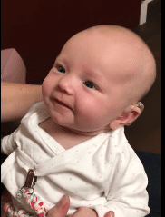 A menina conseguiu ouvir a voz da mãe, Christy Keane, depois que recebeu um aparelho auditivo dos médicos.