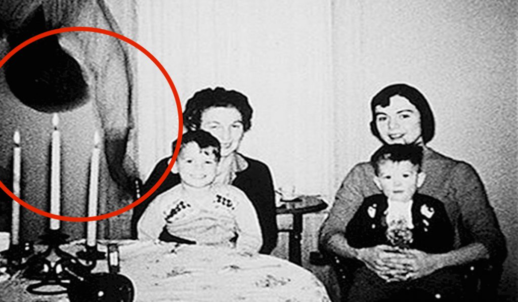 Essa foto foi tirada depois que a família havia se mudado para sua nova casa no Texas em 1950. A história começou na noite em que esta foto foi tirada e um dos meninos começou a ter pesadelos sobre um homem que estava pendurado no teto por anos. Se você olha de perto verá que existe um espaço vazio e escuro nas pernas do menino de terno preto e que não parece normal na foto. Ainda existem grandes debates sobre a autenticidade da foto, mas ninguém chegou em nenhuma conclusão ainda.