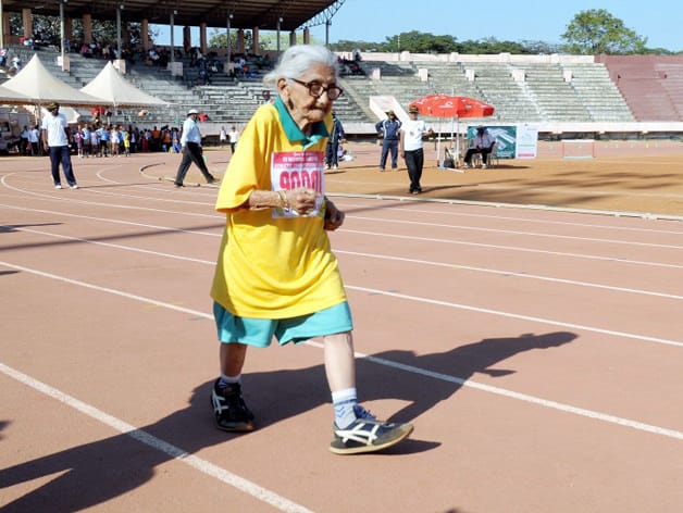 Aos 91 anos, a indiana Saroja Bhai dá aula de como manter o vigor físico. Praticando suas corridas rotineiras, ela conseguiu recentemente completar os 100 metros em dois minutos e cinco segundos. O recorde de Usain Bolt chega a 9,58 segundos.