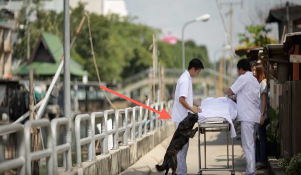 Ele tenta impedir que o corpo de sua dona seja levado embora. Mas ao olhar para trás, tem uma segunda chance