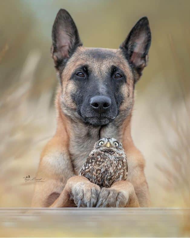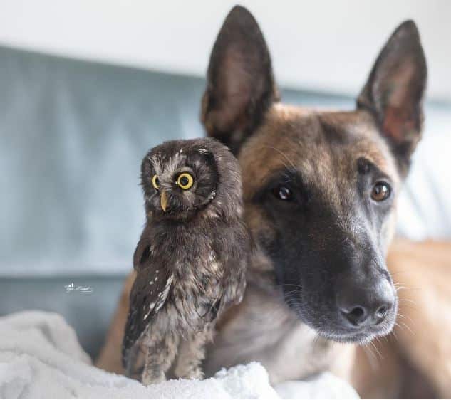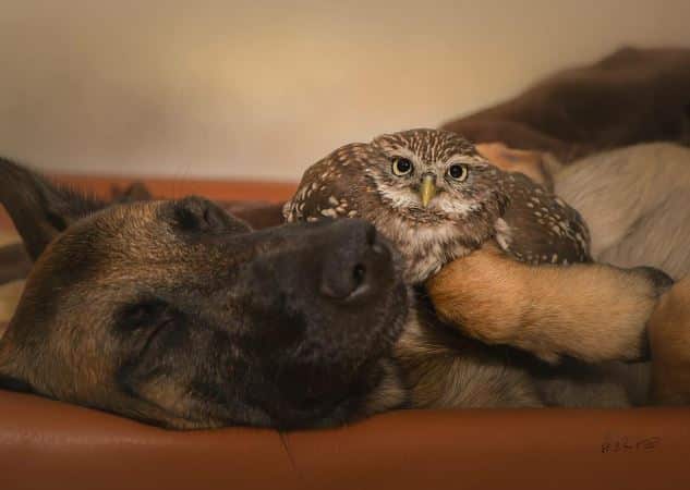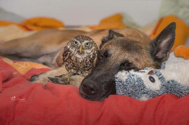 Gente, impossível descrever uma amizade inigualável como a de um cachorro e uma coruja. O nome deles? Poldi, a coruja e Ingo, o cachorro, da raça pastor belga. O mais fofo disso tudo é que nem o dono imaginava que surgiria um carinho tão grande de um pelo outro.