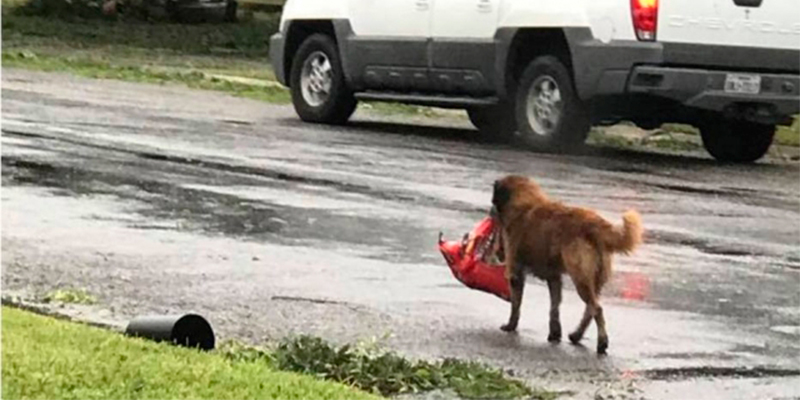 Flagra mostra cachorrinho vagando com ração na boca após furacão e homem revela o que foi feito com ele