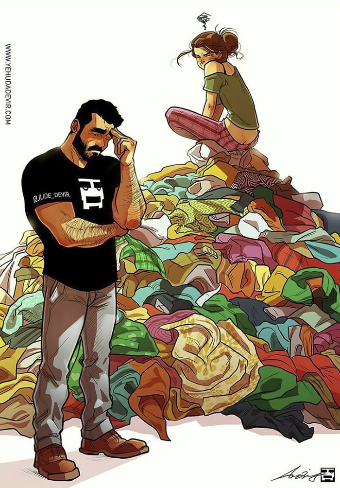 A vida a dois é repleta de momentos únicos que só quem está em um relacionamento entende como é. Para retratar tudo isso, o ilustrador Yehuda Adi Devir, resolveu criar uma série de imagens sobre um casal. As ilustrações representam cenas comuns do dia-a-dia de um casal e também as emoções compartilhadas entre ambas.