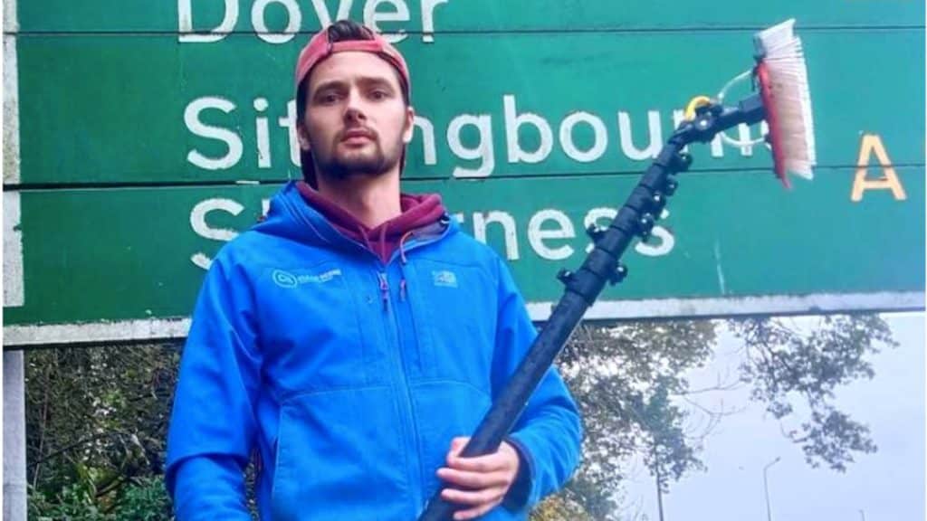 O jovem Liam Wildish, de Maidstone, Inglaterra, é um empresário cujo negócio é lavagem de janelas.