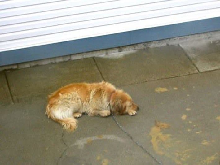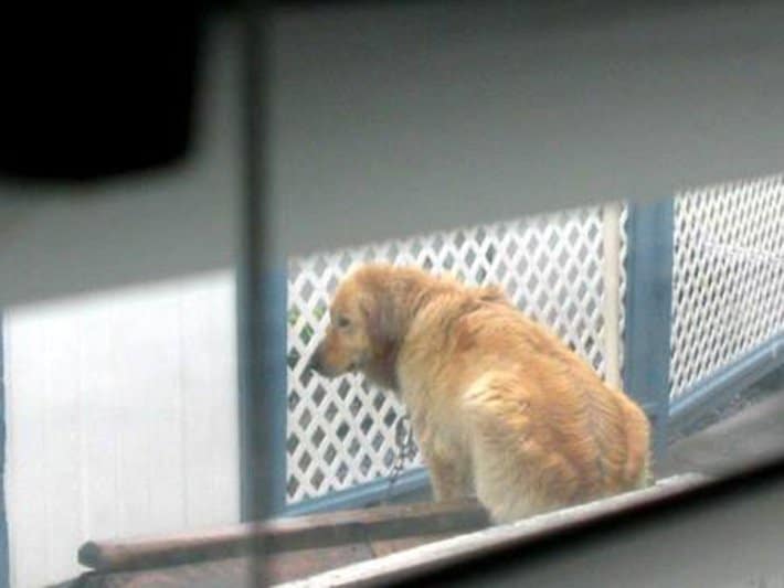 O cão não tinha nome e ninguém se importava com ele. Ele passou muito tempo acorrentado fora da casa sem comida ou água. O cãozinho foi forçado a dormir sozinho fora de casa e implorava por atenção, sem sucesso algum. Conforme os meses e anos se passavam, ele ficou extremamente deprimido.