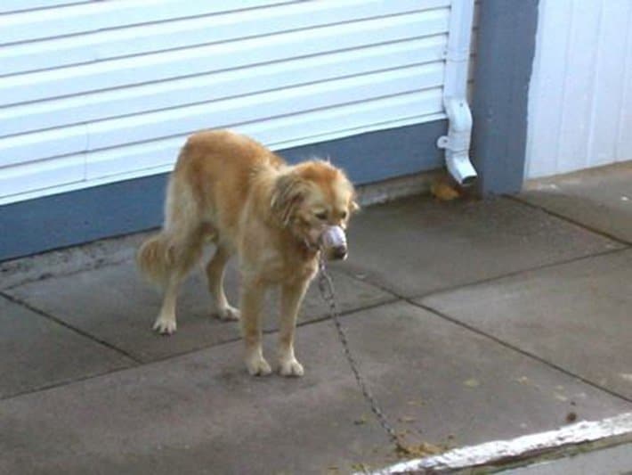 Por apenas ter feito uma típica bagunça de cachorro em sua antiga casa, ele foi colocado para fora. Para piorar a situação, o peludo ainda foi amordaçado enquanto arranhava a porta, implorando para que o deixassem entrar de novo. Eles selaram sua boca para que não pudesse latir.
