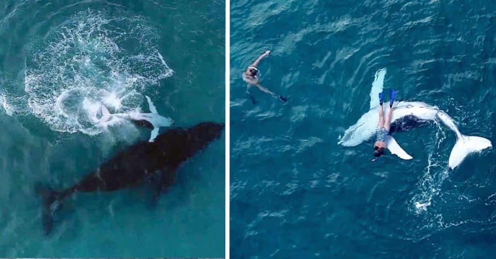 Em outubro de 2018, um fotógrafo australiano chamado Eamon Porter comandava seu drone na costa da Polinésia Francesa. Eamon filmou uma mãe baleia jubarte e seu bebê, que parecia ter apenas algumas semanas de idade.