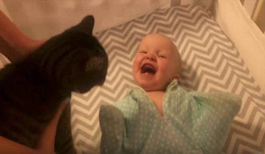 Veja a reação de um bebê ao ficar cara a cara com o seu melhor amigo, um gato. Definitivamente, bebês amam felinos!