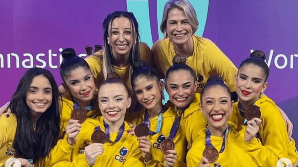 Já o conjunto brasileiro, formado por Bárbara Galvão, Deborah Medrado, Duda Arakaki, Nicole Pírcio, Sofia Madeira e Victória Borges, terminou com a medalha de bronze ao somar 64.500 pontos. A Itália fechou com 70.050 contra 66.250 da Bulgária.