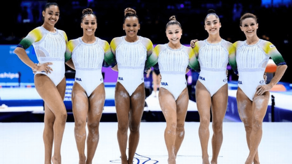 Após garantir vaga na Olimpíada de Paris, a equipe feminina de ginástica do Brasil conseguiu um resultado histórico nesta quarta-feira. As ginastas Rebeca Andrade, Flávia Saraiva, Jade Barbosa, Lorrane Oliveira e Júlia Soares ganharam a medalha de prata no Mundial da Antuérpia, na Bélgica.