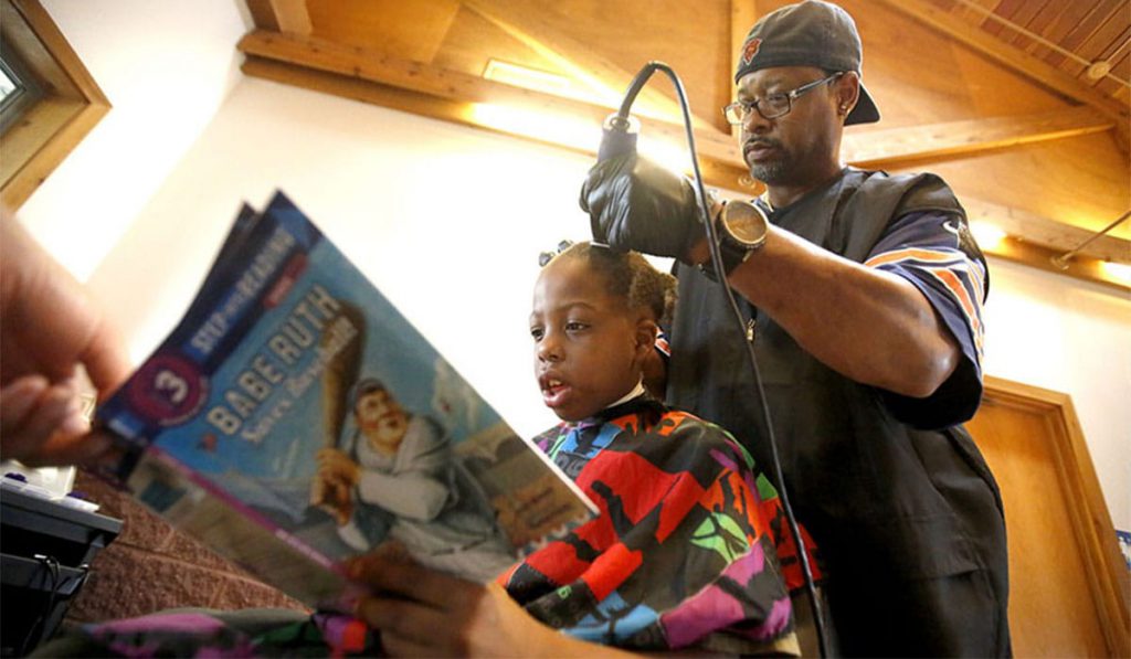 Cabeleireiro faz cortes de graça para crianças. Mas primeiro elas devem ler uma história para ele