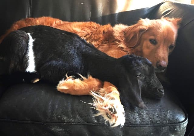 Foi no local que Jerry conheceu um amigo muito especial, Drake, o cachorro. “A maioria dos cordeiros dorme em cima de suas mães”, disse Megan. “E Jerry faz isso com Drake”. E o amor foi totalmente recíproco. Na primeira noite do cordeiro no santuário, Drake estava ansioso. “Ele estava o limpando, o abraçando … apenas estando lá com ele”, disse.