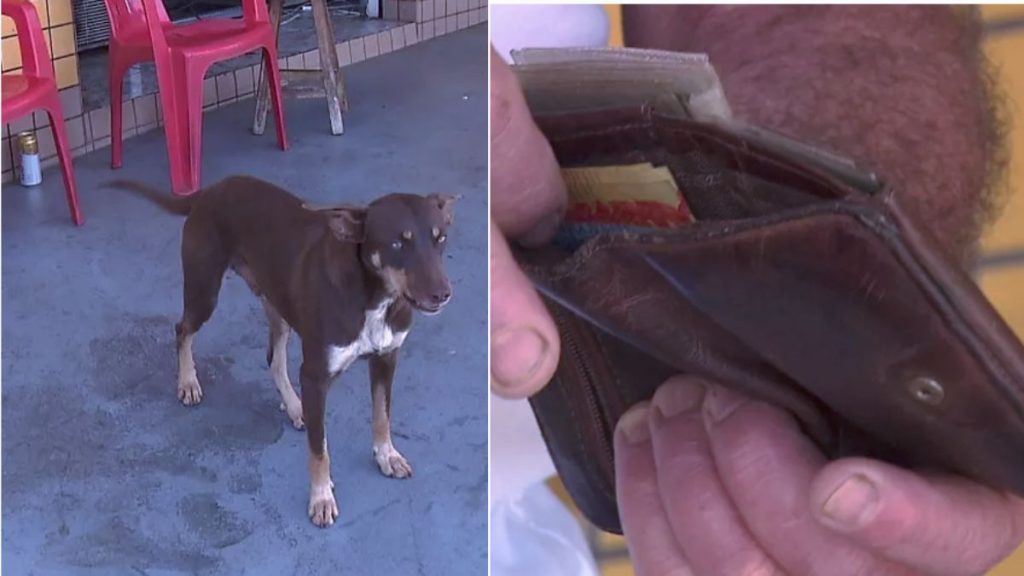 Cachorro de rua acha carteira com quase R$4 mil reais e devolve.