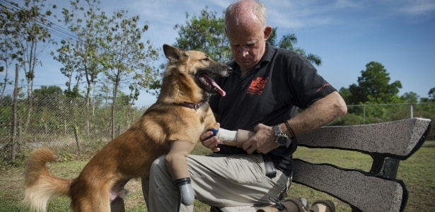 Entretanto, nada de ruim que aconteceu foi capaz de parar a vontade de viver do peludo. Tudo começou quando um aposentado chamado John Dalley encontrou o animal quase morrendo e decidiu o ajudar. Então, ele recorreu a uma empresa especializada em próteses humanas, que fizeram a maior diferença na vida do cachorro.