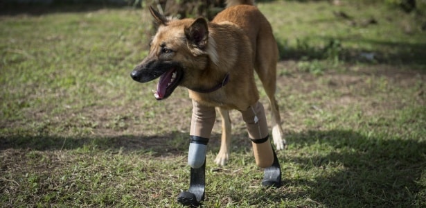 Cachorro recebe próteses usadas apenas por paralímpicos