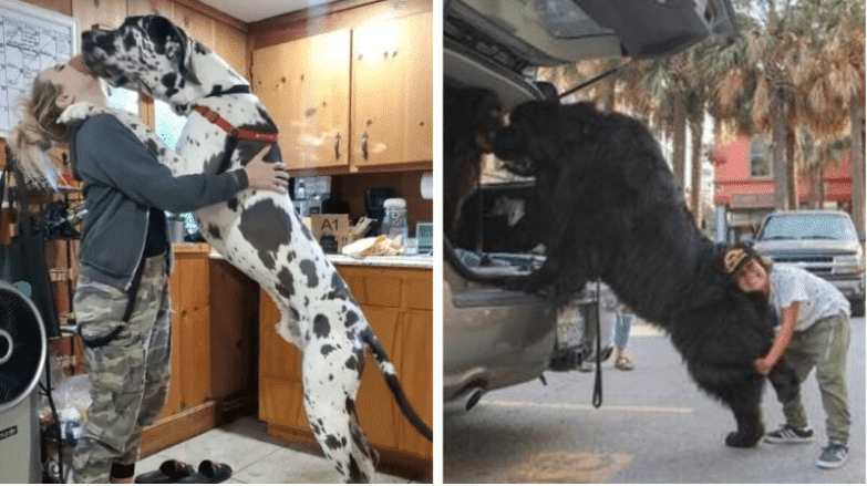 Cães podem crescer bastante, mas sua devoção a seus donos parece estar relacionada ao seu tamanho. Eles só querem ficar perto das pessoas que mais amam no mundo. Além disso, eles fazem isso das maneiras mais divertidas possíveis. Quando você vê como esses gigantes se aconchegam, abraçam ou até dormem, é adorável.