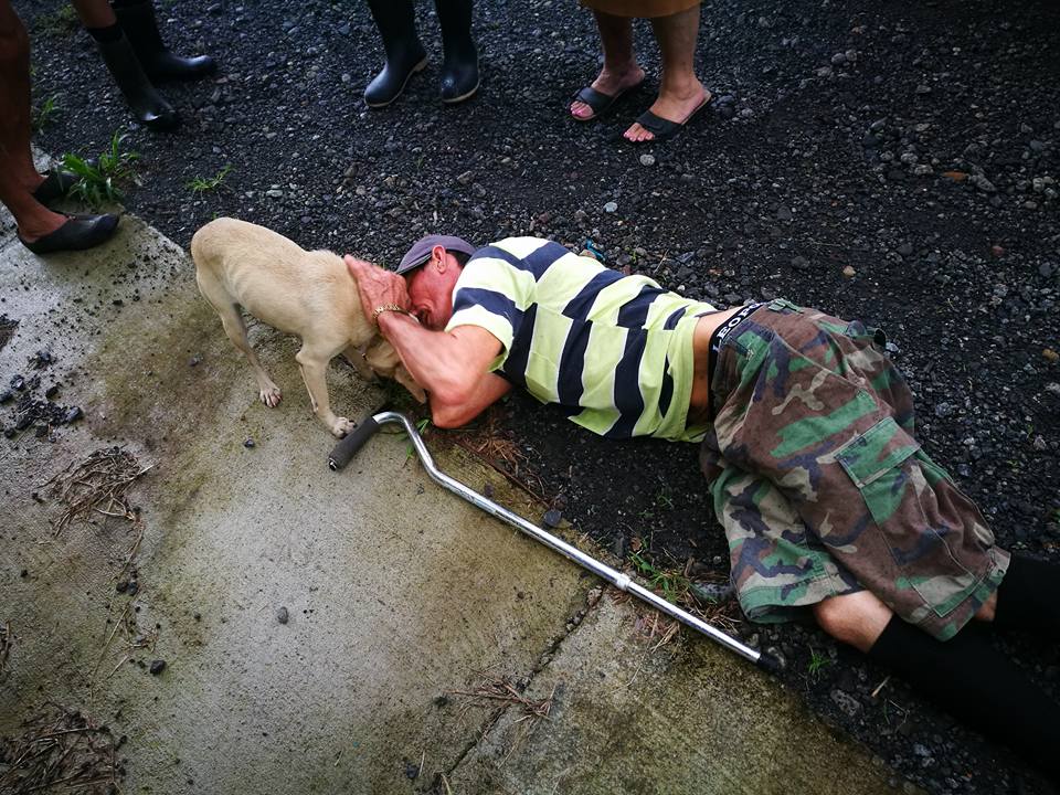 Mesmo com a chuva começando a cair, ela simplesmente não saiu de seu lado. ”Ela nunca o abandonou”, disse. “Ele estava consciente, mas muito ferido. Segundo as pessoas que ali estavam, ele tinha problemas na perna e vive só com o animal. Talvez seja muito difícil caminhar e ele perdeu o equilíbrio e caiu”, continuou Milagro.