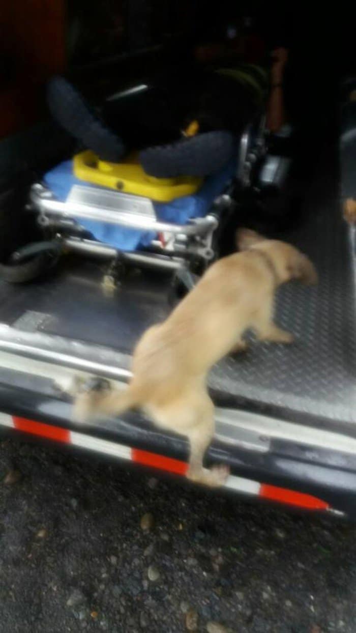 Logo, assim que a ambulância deu as caras, eles levantaram o homem e o colocaram na maca direto na ambulância. Não demorou até que a cadelinha subisse junto com ele no veículo. “Imediatamente, ele foi direto para onde seu dono estava na ambulância e se encostou em seu peito como é possível ver nas fotos. O paramédico deixou que ele se despedisse, mas logo tivemos que trazê-la de nova, porque não era permitida a presença de animais na ambulância”, revelou a mulher.