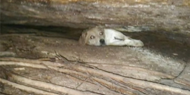 Cadela é resgatada após ficar 10 dias entalada em rocha