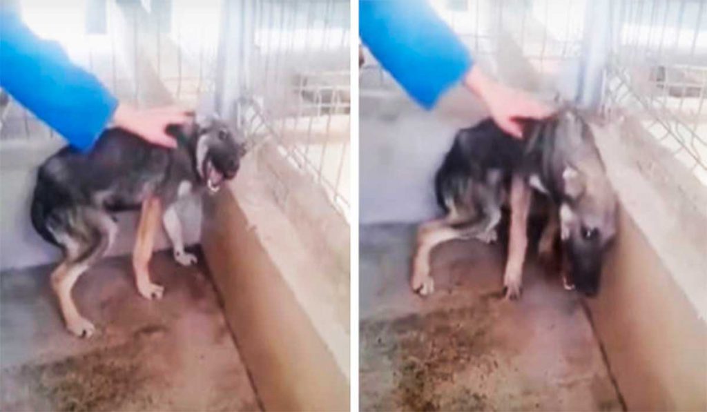 Cadela vítima de abuso tem reação comovente ao receber um carinho pela primeira vez