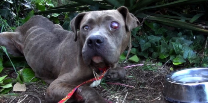 Cadelinha é encontrada com o olho ferido e quase morrendo de fome