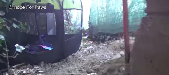 Ela continuou a rosnar, mas assim que cheirou os cachorrinhos e percebeu que estava tudo bem, ela começou a sentir-se mais confortável. Os socorristas colocaram a família toda na barraca e os levaram ao carro. Assim, puderam comer com mais tranquilidade e estavam, finalmente, todos seguros.