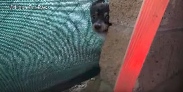 A mãe começou a rosnar para os socorristas, com medo de que eles machucassem seus filhos. Eles sabiam que deveriam agir rápido para resgatá-la e conseguiram colocar uma coleira nela, com muito esforço. Mesmo presa, a cadelinha sentou-se ao lado de seus filhotes, ainda nervosa sobre o que poderiam fazer com eles.