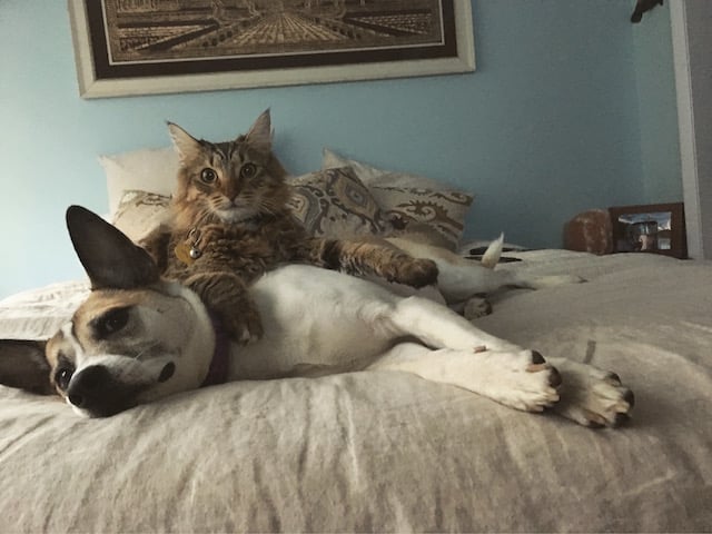 Foi quando ela percebeu que tinha que encontrar uma solução rápida. “Eu comecei a notar que Lady ficava fisicamente doente quando eu a deixava em casa. Ela vomitava, tinha diarreia e mordia as coisas incessantemente. Mesmo que fosse só por alguns minutos, ela ficava louca. Então pensei: ‘qual é a cura para a solidão?’ Um amigo! Eu consegui Kitty no dia seguinte.”