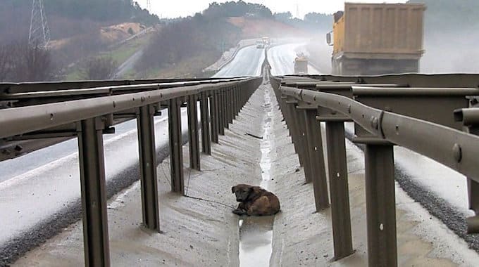Um rapaz chamado Cenk ficou intrigado com uma figura que viu na pista. E assim que se aproximou, percebeu que se tratava do animal rejeitado. Sem pensar mais de uma vez, ele procurou conquistar a confiança do cão para colocá-lo em seu carro e levá-lo ao veterinário. E assim, sem passar por maiores dificuldades, ele o fez.