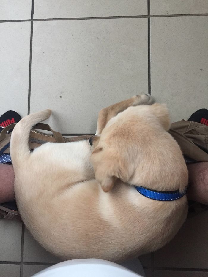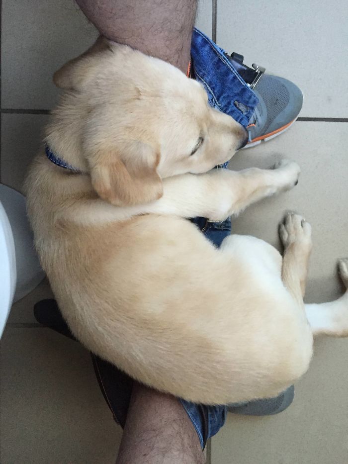 Se você tem ou já teve um cachorro, sabe muito bem que eles se apegam muito a nós, humanos. Mas muito mesmo, de uma forma única. Eles passam a nos seguir para todos os lugares: quarto, sala, cozinha e até…banheiro! Tanto que com o pequeno Axl, da raça Labrador, não foi nada diferente.