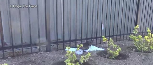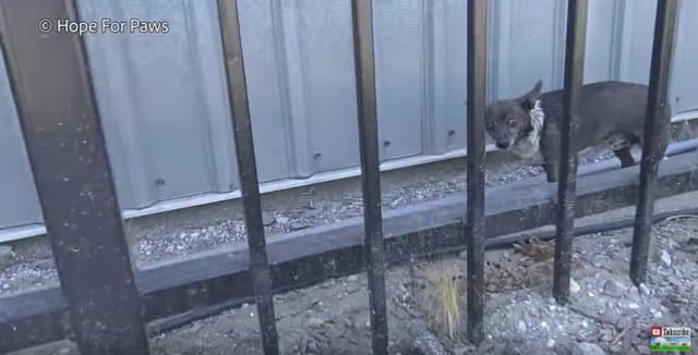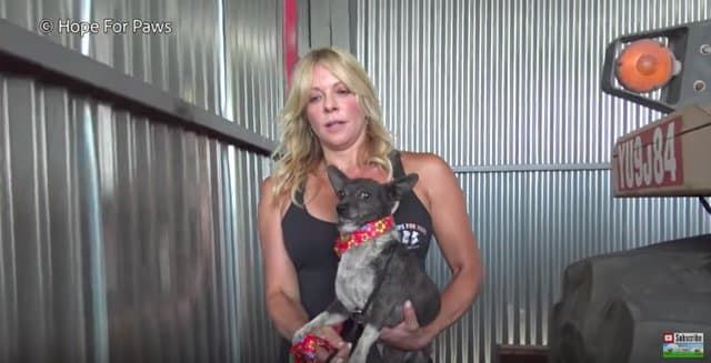 Após a equipe da ONG ‘Hope for Paws’ ser chamada, os socorristas encontraram o animal descansando em um cobertor ao lado de uma cerca. Mas imediatamente após alguém se aproximar, Hugo se desesperou. Visivelmente assustado, o cãozinho mal conseguia se mover. Ele nem conseguia ficar de pé.