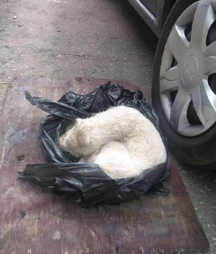 E foi exatamente isso que aconteceu na Transilvânia (EUA). Um cão foi colocado em um um saco de lixo e jogado em uma caçamba de entulho. Como vemos nas imagens, tudo indicava que ele estava morto e havia sido abandonado, supostamente, já sem vida.