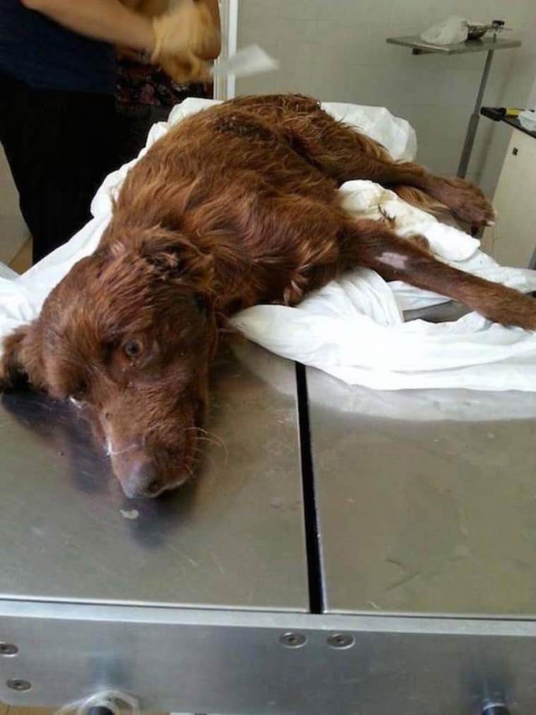 Assim que Linda Li, voluntária em resgates de animais, apareceu no local, encontrou o cachorro repleto de carrapatos e larvas de moscas. Sua pele estava em carne viva devido às pragas que estavam se alimentando dela. Linda e outros socorristas deram o nome de Oliviero. Após tentar lhe dar um pouco de água, buscaram ajuda veterinária o mais rápido possível.