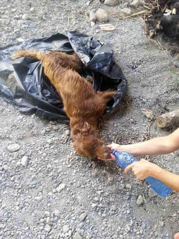 Enquanto passeavam pelas margens dos rios de Messina, na Itália, duas mulheres avistaram uma sacola de lixo em seu caminho. O mais estranho é que gemidos pareciam vir de dentro e, assim que a rasgaram para ver o que era, encontraram um cão. Ele estava com as pernas presas por um fio elétrico e depois jogado no rio.