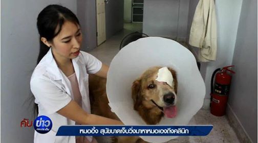O veterinário Siramanee Wongpitayadisai tratou o cão, remendou os olhos e colocou um cone ao redor de sua cabeça. Eles sabiam que o golden provavelmente não vivia nas ruas, já que era extremamente amigável. De acordo com a equipe, a maioria dos cachorros de rua não se comportariam dessa maneira.