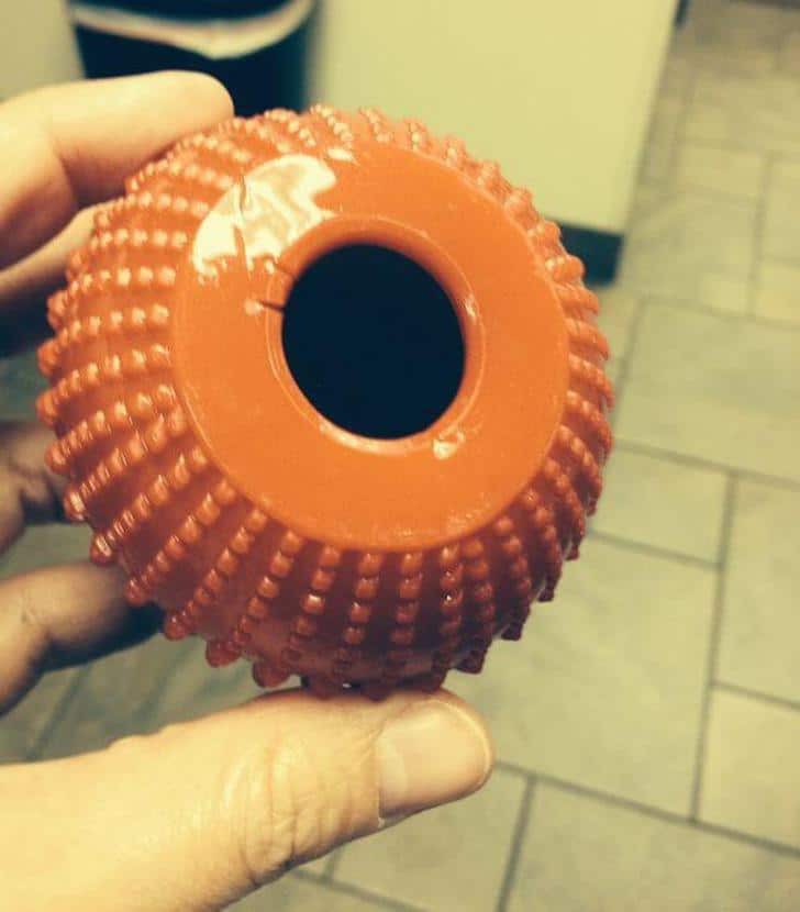 Entretanto, um dia quando brincava com ele, Maximus entrou correndo no quarto de seus donos à 1 hora da manhã. Quando pulou na cama deles, sua língua atravessou o buraco do objeto, o deixando sem ele. Assim, ele ficou preso com a língua totalmente inchada. Mesmo após ser socorrido, infelizmente, o cão acabou falecendo.