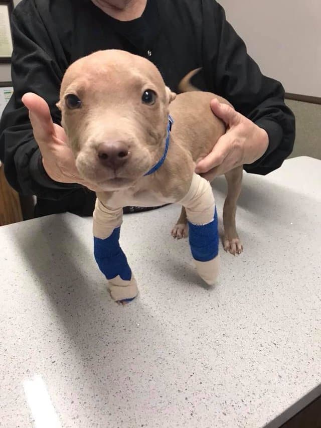 Filhote de pitbull é encontrado ferido após ser atacado por outro cão