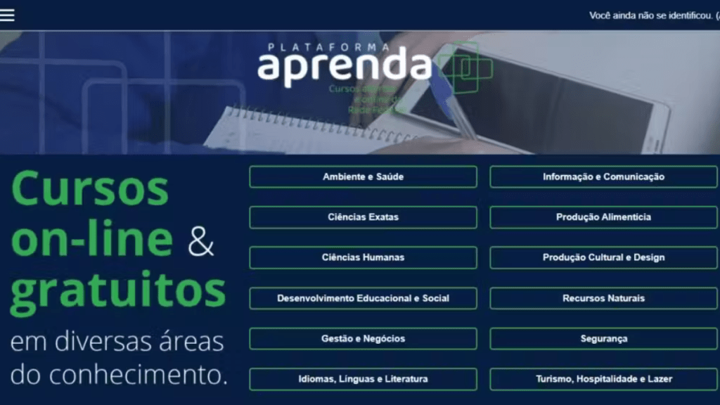 Dentro da plataforma, está disponível cursos de diversas áreas do conhecimento, como saúde, informação, comunicação, recursos humanos, turismo e muito mais. Foto: Reprodução/Plataforma Aprenda Mais.