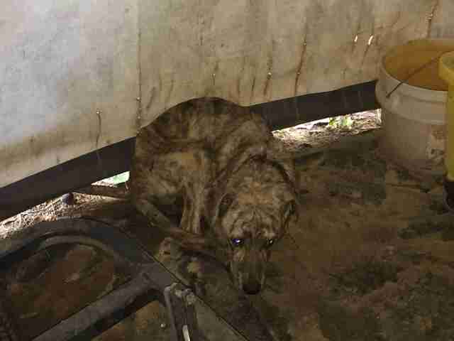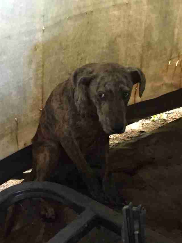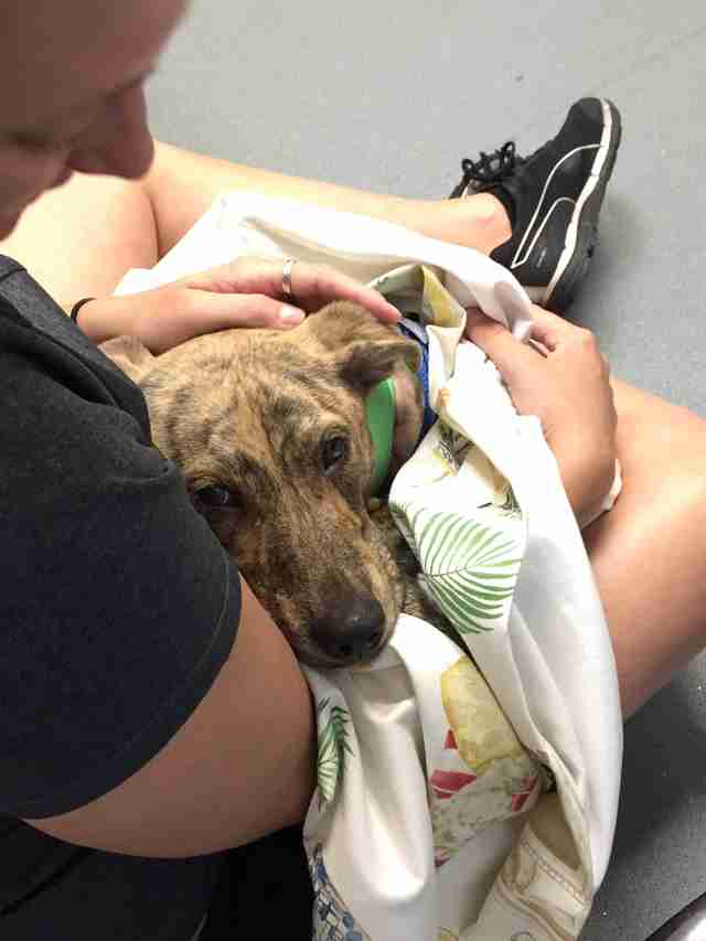 Usando um cobertor, o casal deu um jeito de pegar o cachorro. E o mais notável (e triste) foi que ele nem se moveu com a tentativa. Imóvel, ele estava entregue. Parecia não se importar com o que poderia acontecer com ele.