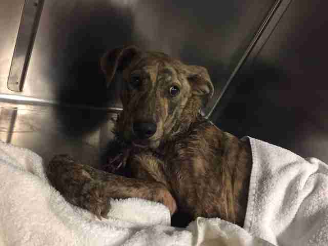 Uma vez que foi capturado pela dupla, o cão, que ganhou o apelido de Tobie, foi imediatamente levado para um veterinário. Lá, foi identificado que a lesão no pescoço era profunda e o maior temor era que pudesse causar uma grave infecção. A ferida foi causada por uma corda que havia sido amarrada em seu pescoço. “Naquele instante, não sabíamos se ele sobreviveria”, comentou Laura, que é a tutora orgulhosa de outros três cães.