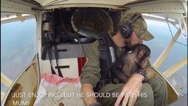 Momento em que chimpanzé bebê abraça piloto que o salvou da morte conquista a web