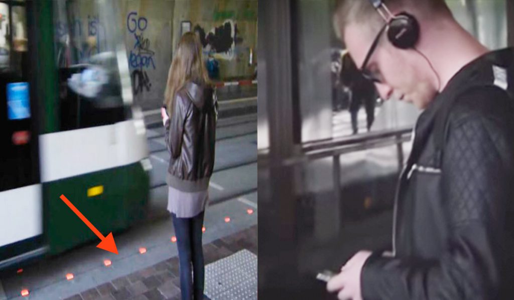 Pesquisas recentes indicam que 20% dos pedestres na Europa podem ser considerados “zumbis digitais” e nos EUA, uma em cada três pessoas costuma andar distraída com aparelhos eletrônicos pelas ruas. Esses fatores são grandes agravantes para acidentes de trânsito. Por isso, luzes foram colocadas na beiradas das pistas e nos cruzamentos, além de sinalizações em postes que continuam no mesmo lugar.