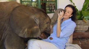 Moyo, o filhote de elefante, tinha apenas alguns dias quando sua mãe humana, Roxy Danckwerts, o encontrou órfão e sozinho nas margens de um lago no Zimbábue.