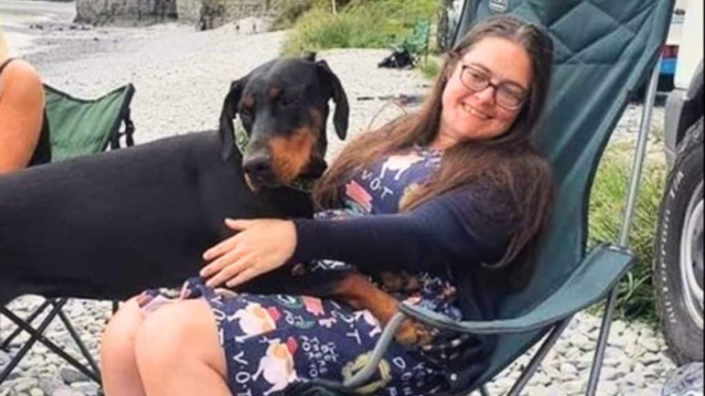 Enquanto eles estavam lá, um de seus dois dobermans, um grande lug chamado Indie, continuou correndo para outro trailer para importuná-la enquanto ela fazia crochê. Na terceira vez, Owen foi se desculpar.