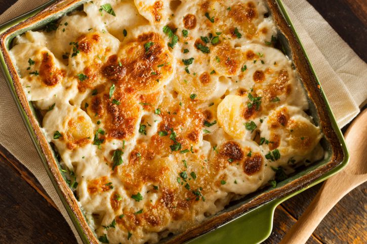 5. Faça uma camada de batatas, outra de queijo, outra de batatas e assim sucessivamente