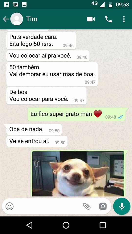 Se quer saber, Leonardo jamais imaginou que essa seria a reação de um desconhecido. Ele, acidentalmente, havia colocado o crédito de R$50 no número errado. O dele termina com 6213 e ele colocou o da outra pessoa, 6313.